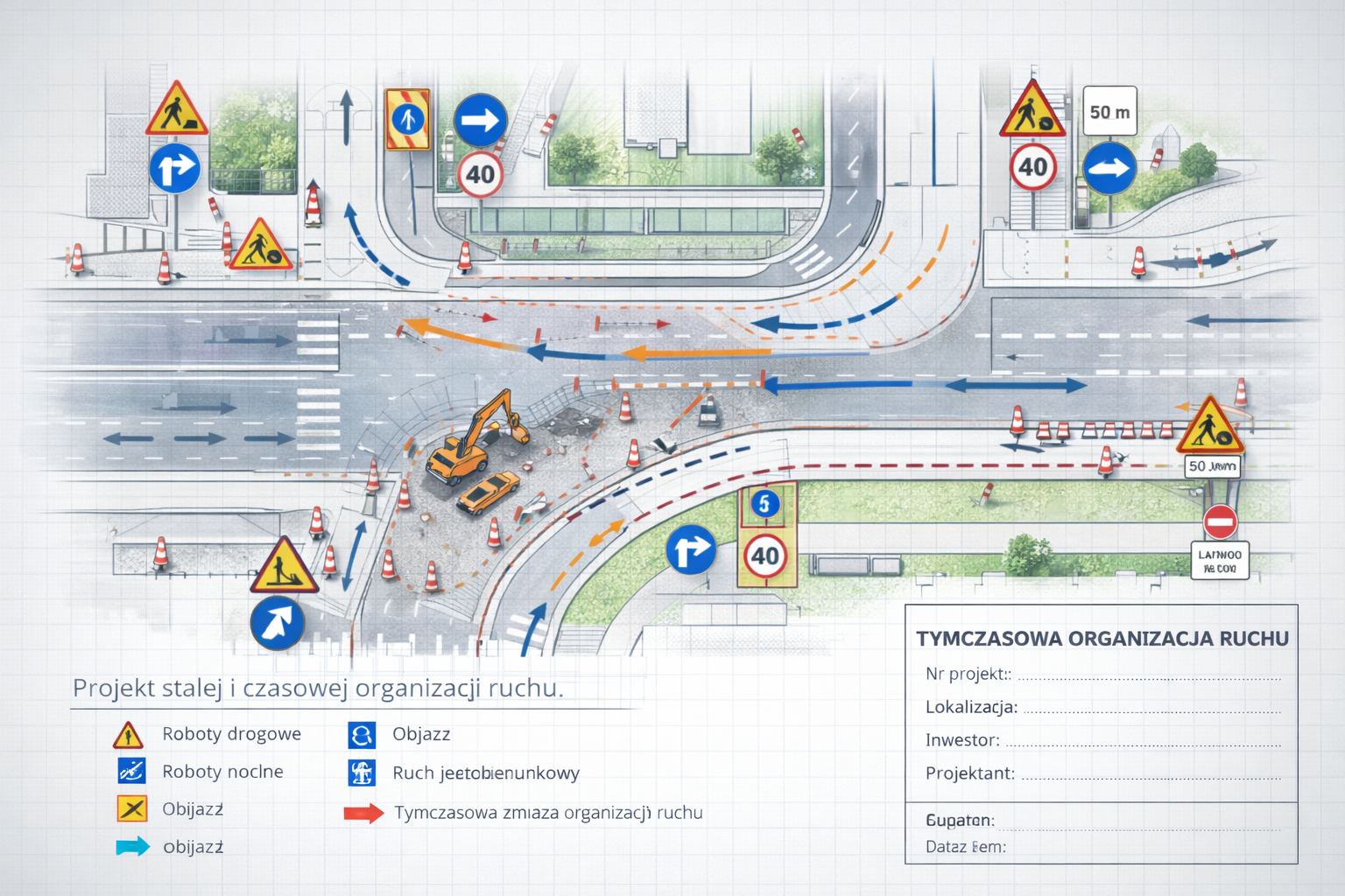 Projekty stałej i czasowej organizacji ruchu, w tym na czas robót drogowych i inwestycji.