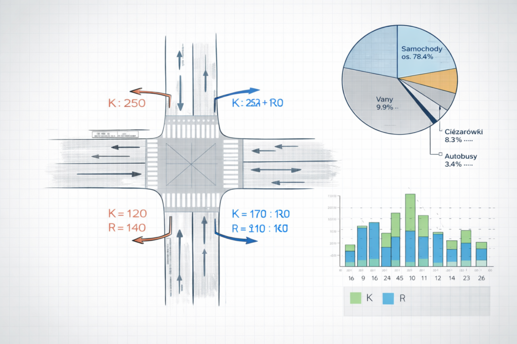 Projekty organizacji ruchu drogowego, badania i pomiary ruchu oraz przeglądy dróg.
